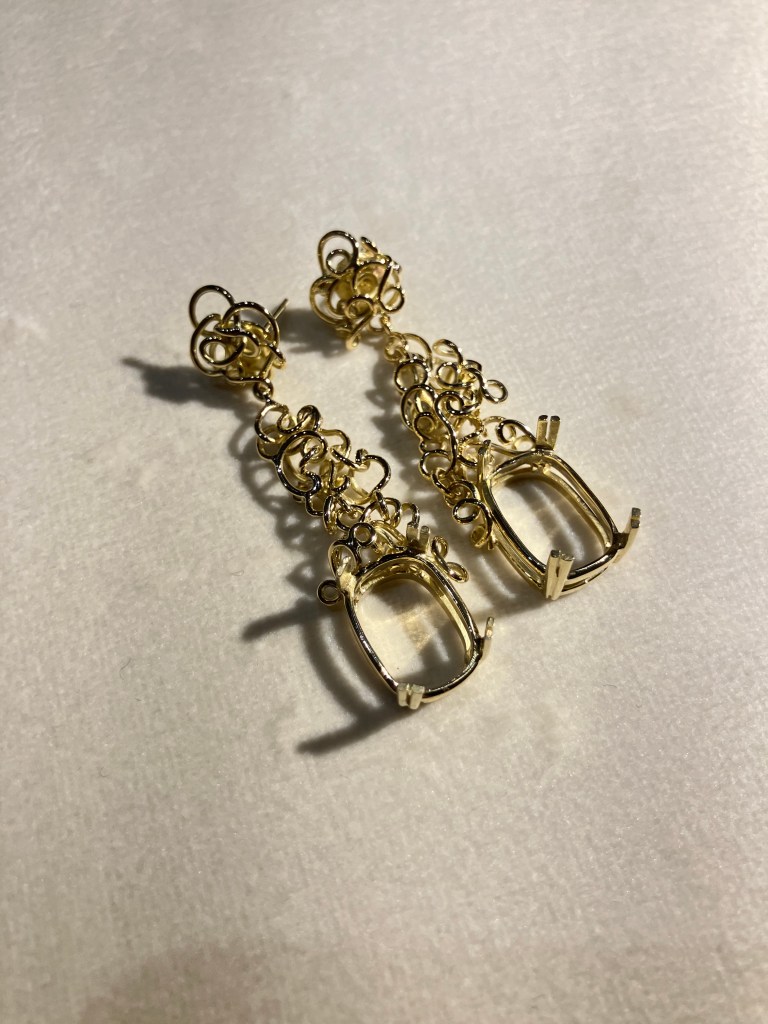Il secondo Seicento francese, il barocco nelle sue volute curvilinee che diventa apparentemente indomabile, la ribellione alla forma e alla misura, un vespaio di suoni, un isterismo contorsionista di violini vivaldiani. Se questi orecchini fossero stati costruiti ascoltando una musica sarebbe l’Inverno da le Quattro Stagioni, se fosse un giardino sarebbe Vaux-Le-Vicomte, sarebbe dare alla curva un senso, sarebbe tradire la compostezza in favore della bellezza, scegliere consapevolmente di eccedere. Una bellezza presuntuosa, un tripudio trionfale disinvolto la cui disinvoltura è tale da suscitare un catalogo di reazioni, dal sincero entusiasmo fino ad un sommesso brontolio di invidia.