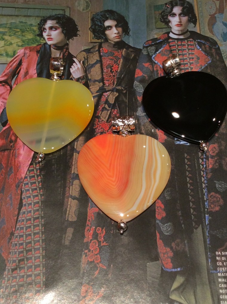 I nostri Cuori di pietra – Hearts of stone in agata naturale sono pezzi a sè. Ognuno presenta una gamma di striature di colore diversa, colori caldi che vanno dall’arancio estivo ai toni ambrati del giallo e del marrone, fino al nero pieno dell’onice lucido, per chi ama il nero a tutti i costi anche d’estate, soprattutto d’estate. Li presentiamo montati in argento 925 grezzo, leggermente graffiato, da acquistare semplici o già inseriti in un mazzo di cordini colorati, finiti anch’essi con la loro chiusura in argento brasato. Decisamente una buona alternativa per chi non ama la collana classicamente intesa, ma non indossa volentieri nemmeno quell’etnico circolante che sa di provincia industriale cinese e di trascuratezza, più che di profumi d’Oriente.